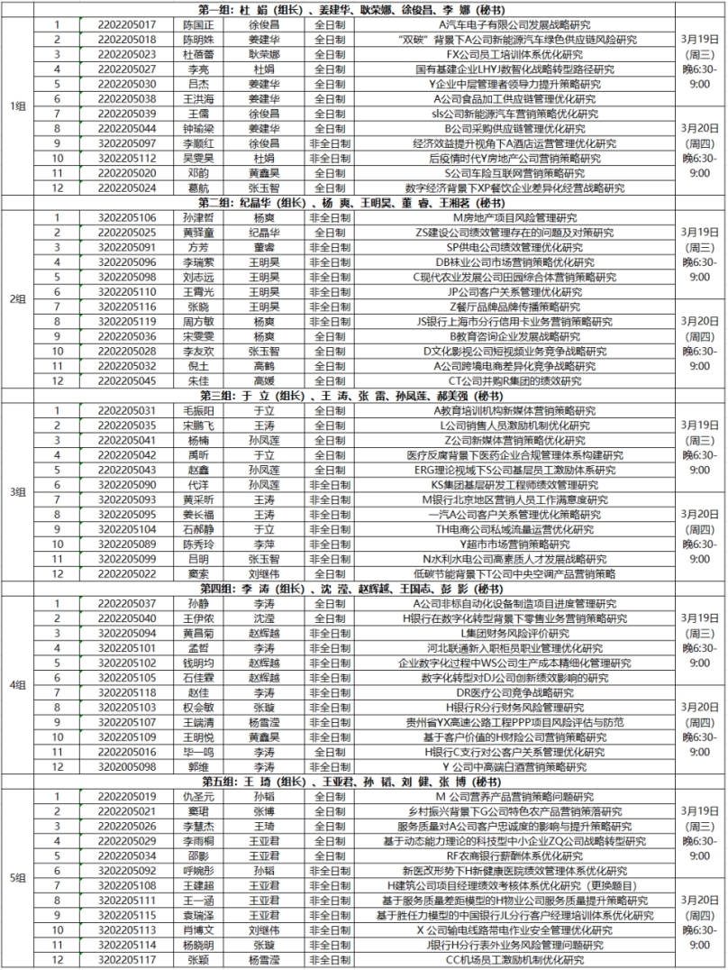 三、预答辩分组
