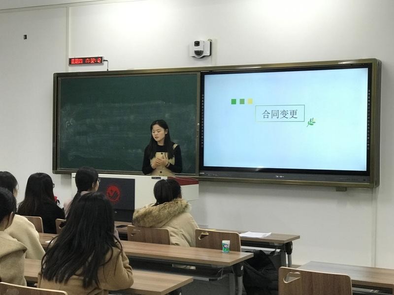 随后由研二王晨同学带来“合同变更”主题分享。王晨同学通过对比合同变更不同情况的异同,给大家讲解了作为单独合同、作为原合同的终止及新合同的订立以及作为原合同的组成部分等三种情况的确定和判断合同变更的步骤等知识。纪老师对王晨同学的分享做出一些补充:实务中的合同签订情况较为复杂,财务人员要以理论知识为指导,将实际情况与理论需充分结合,用理论指导实践。