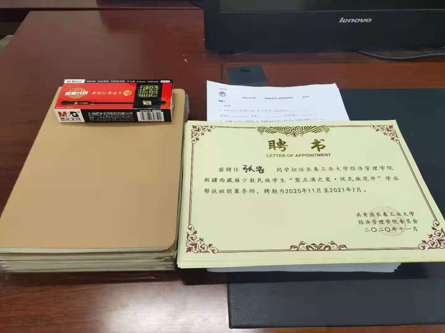 开班仪式上,新疆籍少数民族辅导员托合提罕老师简要阐述了本次学习活动的目的和形式。本次辅导班利用每周周日、周二、周四的晚自习时间以“朋辈辅导”的方式进行“一对一”的辅导。仪式上,托合提罕、聂铭潞老师为担任辅导老师的“朋辈导师们”颁发聘书,给参与辅导班的员工打印了丰富的学习资料和测试题,并为每位同学准备了学习笔记本和中性笔,激励大家树立学习信心,端正学习态度,增强学习自觉性,努力提高学习成绩。