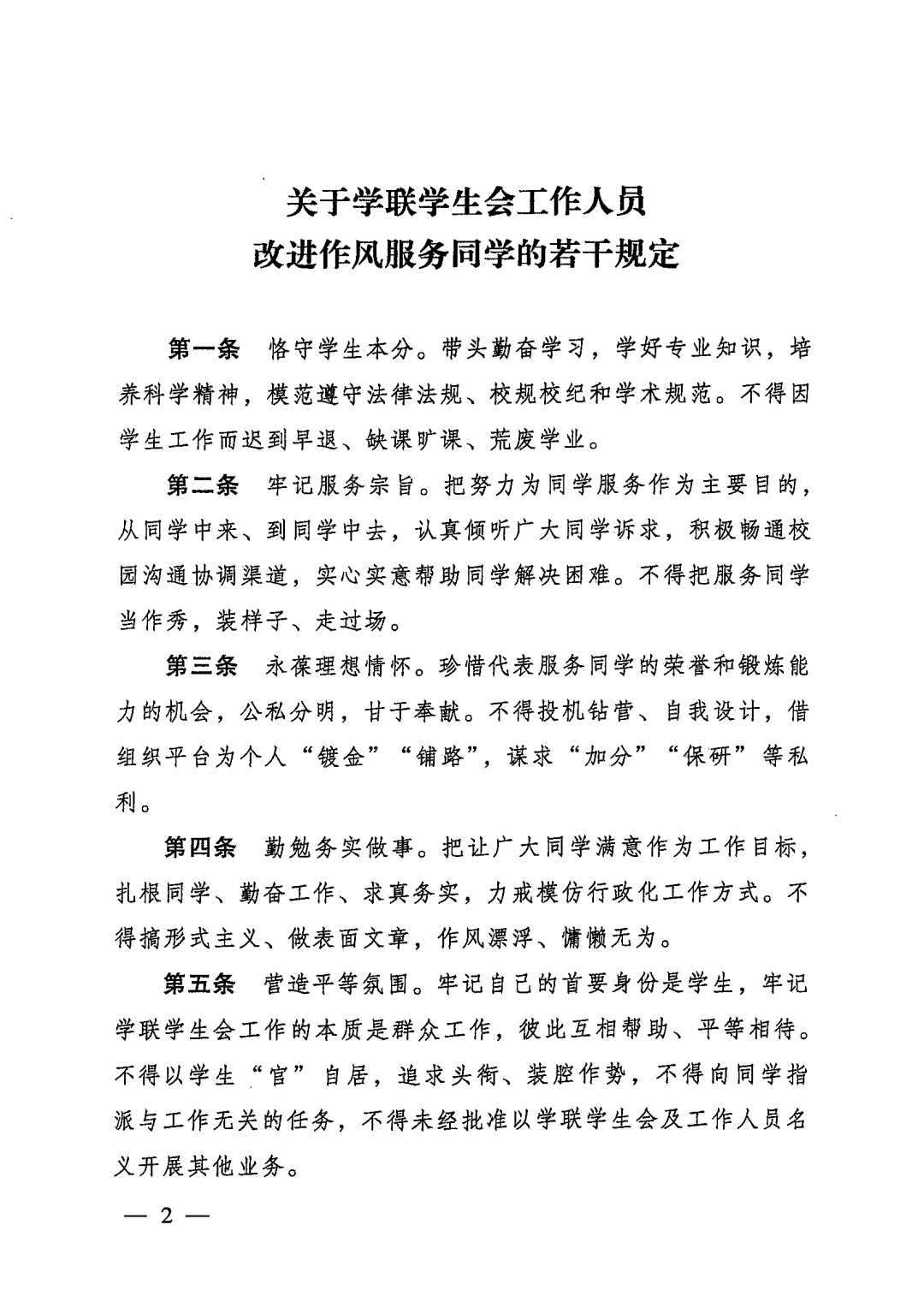 把让广大同学满意作为工作目标,扎根同学、勤奋工作、求真务实,力戒模仿行政化工作方式。不得搞形式主义、做表面文章,作风漂浮、慵懒无为。