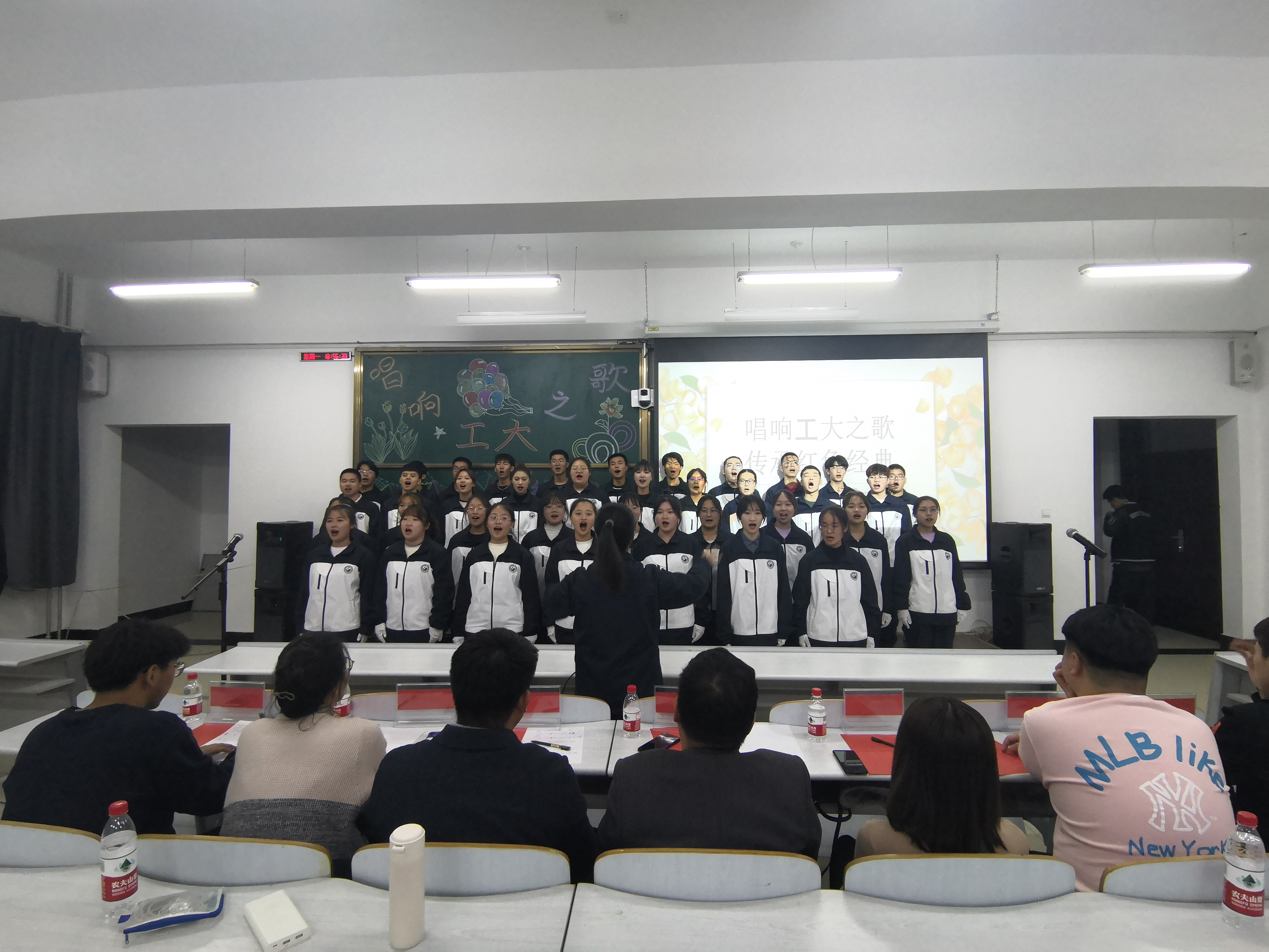 决赛现场,八支参赛队伍的表现各个精彩绝伦,整个阶梯教室内热潮涌动。参赛同学们统一着装,挺胸抬头,脸上的神色自信而从容。他们纵情高歌,展现了工大学子的精气神。