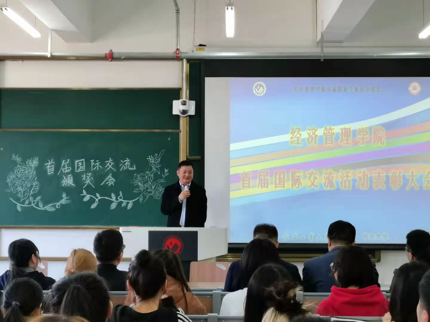 经理张玉智为表彰会做了总结讲话。他高度评价了学院首届国际交流活动取得的成校,赞扬师生在国际交流活动中的努力付出和优异表现,在全校来看是具有代表性的活动之一。同时,他也充分肯定了经济系牵头举办的各项活动,并提出了未来发展的方向,鼓舞师生继续大步向前。