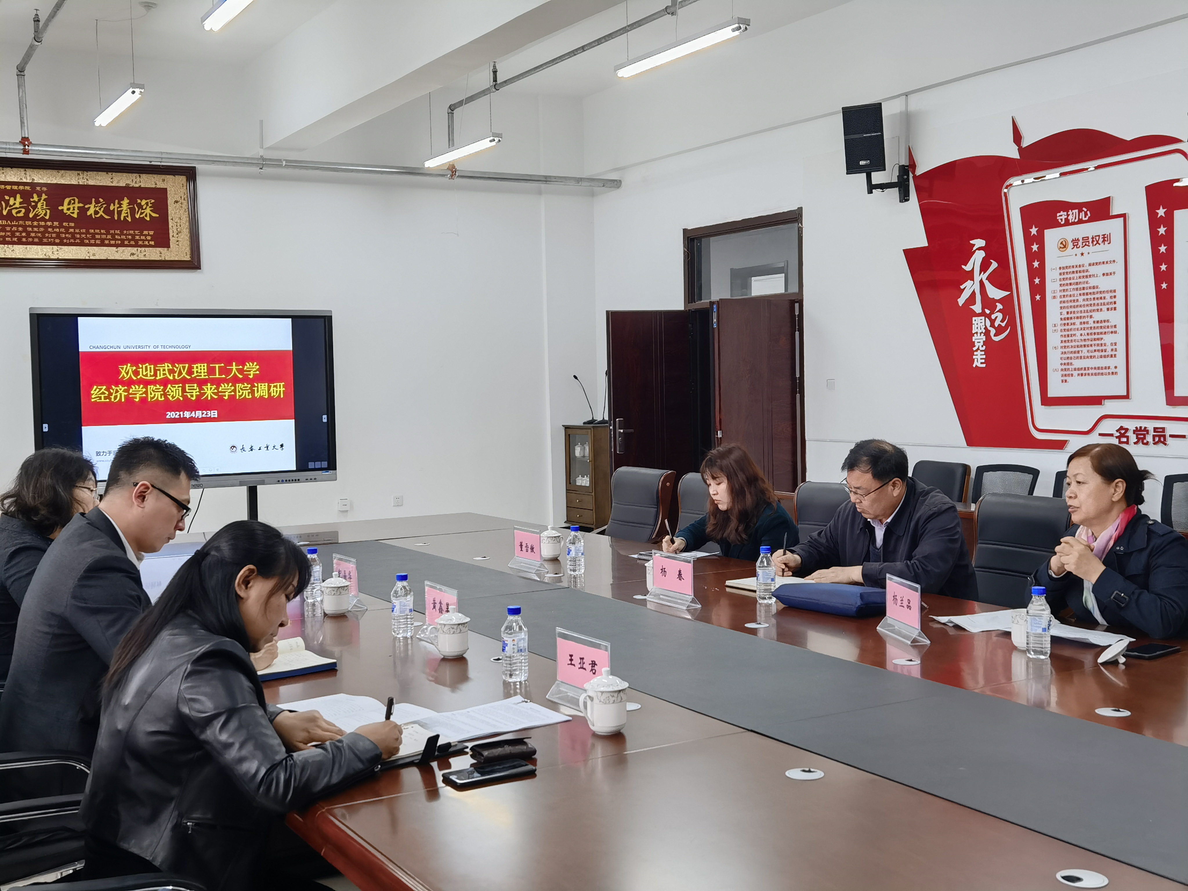 2021年4月23日上午武汉理工大学经济学院杨春副书记、杨兰品教授以及董雪傲老师来学院调研。调研会上,杨兰品教授介绍了经济学院应用经济学的学科发展现状,包括基本情况、学科方向和优势特色、人才培养目标、生源数量与质量以及国内外影响五个方面。黄鑫昊副经理向武汉理工大学经济学院领导介绍了学院基本现状,财会系纪晶华主任与工商管理系王亚军主任分别介绍了公司专业设置与团队建设等具体情况。双方在应用经济学评估经验与未来发展规划上展开交流,探讨专业团队建设方法。