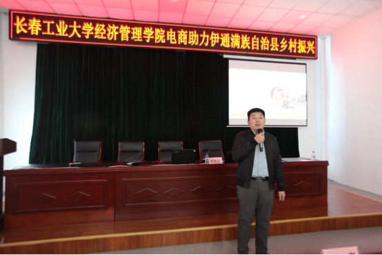 黄鑫昊致辞。首先对吉林省科学技术协会和伊通县县委、县政府给予ylzzcom永利总站线路检测这次“科技兴农电商助力”乡村产业振兴科学普及服务的机会表示感谢。感谢伊通满族自治县新时代文明实践中心、共青团伊通满族自治县委员会对此次培训的精心组织,也感谢长春师范大学、多点期待文化传媒的各位专家的支持。他提出此次活动将通过讲座、培训、交流等形式,与伊通县相关职能部门的工作人员、农村的基层干部、创业青年和普通农户共同提升对农村电商的认识,使农村电商成为乡村振兴、人民致富的助推器。又详细介绍了ylzzcom永利总站线路检测的发展历程和学院概况,学院拥有电子商务专业,创办了全国首家老员工自主经营的电商网站,2020年电商专业被教育厅评为全省一流专业。他指出学院将依托自身的教学科研优势,秉承贡献知识、培育人才、创造价值、服务社会的理念,与伊通县社会经济发展的需要同频共振,描绘学院服务地方工作的新画卷。
