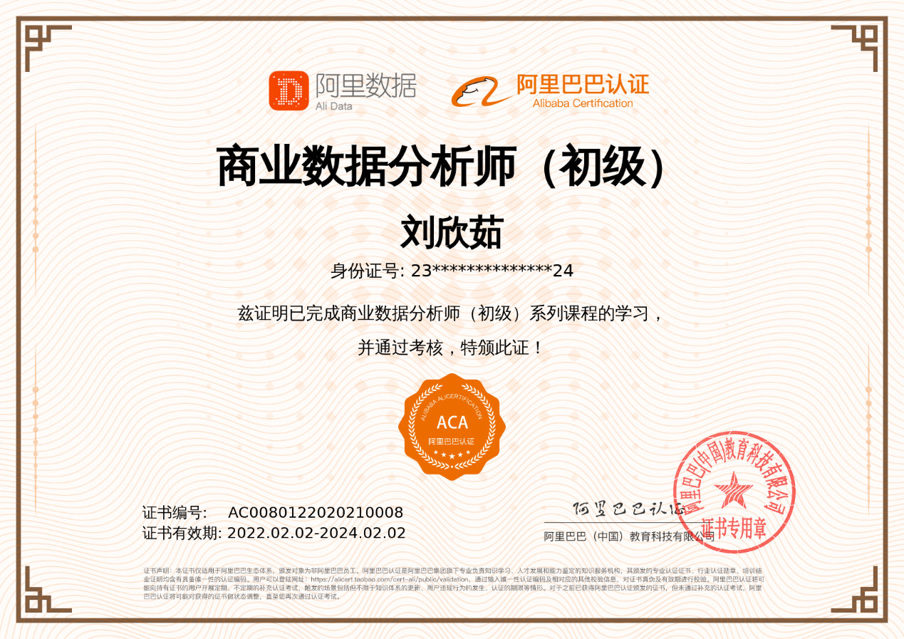 为了更好地培养具备大数据思维、数据分析、数据管理和创新能力的商业数据分析人才,2022年1月10日至2022年2月28日,耿荣娜老师组织管科系36名同学参加了由阿里数据推出的“阿里巴巴商业数据分析师”阿里巴巴官方认证项目。