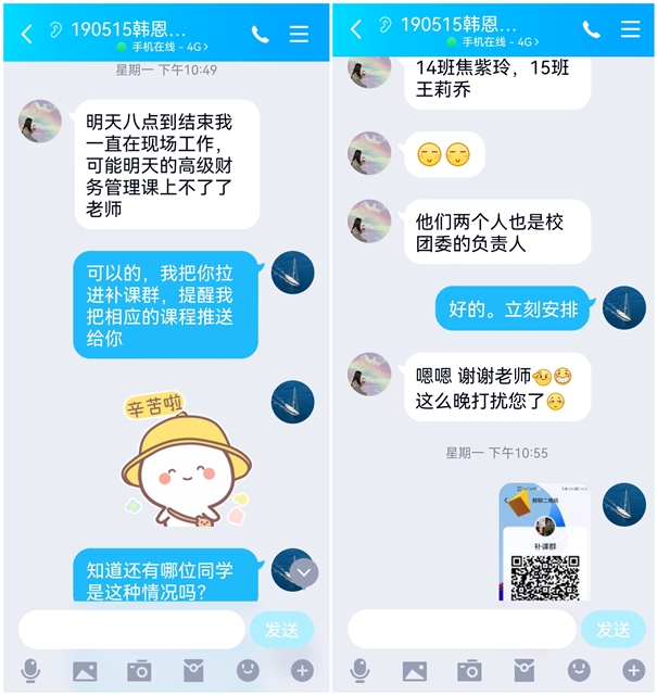 今天是3月18日,封楼的第2周。作为190514班的一员,我们的班导师恰恰是教我们高级财务管理的赵英鑫老师。她不但在学习上为我们解惑,还在生活中鼓励我们调整好心态积极应对疫情,帮助我们建立与学院和学校沟通的桥梁。虽然我们不能出去,但我们的诉求和心声能够很快的传达到学院或学校的相关部门。虽然疫情依然持续,但因为信赖,我们的心依然团结、坚定。