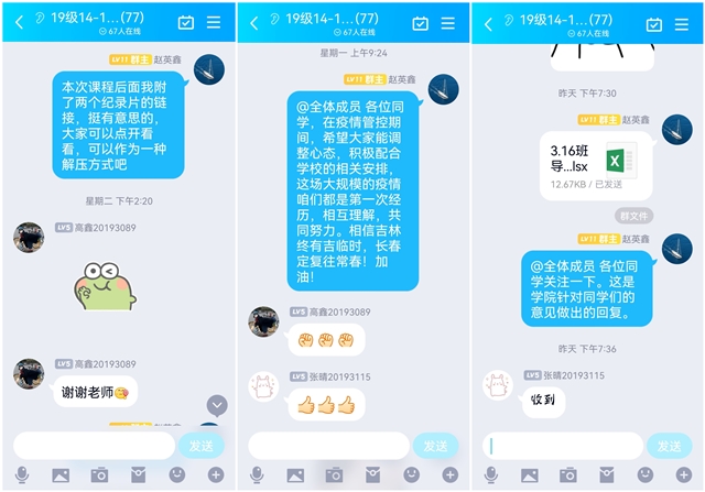 赵英鑫老师在群里鼓励同学们并听取意见 摄影:张晴
