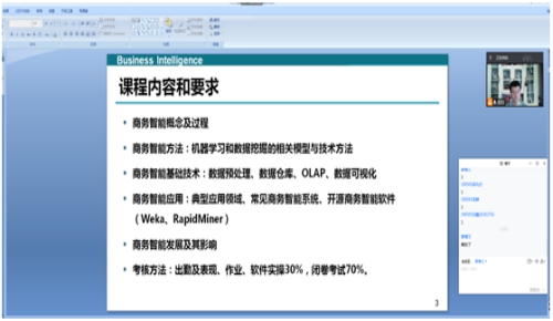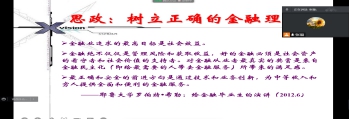 4.我们的“铿锵玫瑰”张璇老师,灵活授课,综合使用雨课堂和腾讯会议做题、答题功能,自主切换直播和录课的不同教学模式,使线上与线下无缝衔接。课前播放视频热身,引发员工的浓厚兴趣,授课饱满热情,重点突出并减轻学习压力,课件中标注教材学习页码。通过疫情购买酒精的经历,深度解读理论知识,引起员工共鸣。展示员工优秀表现,吸引其他同学注意力、从而提高课堂整体效果。并且换位思考,体现人文关怀,表达了时刻与同学共克疫情的真诚心意。渗透思政内容,引用耶鲁大学毕业生演讲的话语激励金融专业员工。整节课内容丰盈,员工受益匪浅。