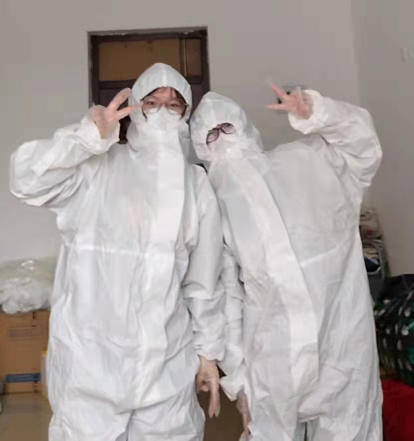 除日常进行核酸检测外,对宿舍进行全面消杀,也是防疫工作中的重要内容。身穿防护服、肩背消毒桶、穿梭于宿舍的各个楼层和寝室喷洒消毒液,这便是200505班的张清华每天的工作,肩上的消毒桶就重达10余千克,而张清华要每天穿着防护服,背着消毒桶对宿舍近百个房间进行消毒。这项工作显然是辛苦的,而她却毫无怨言,把工作当做乐趣。