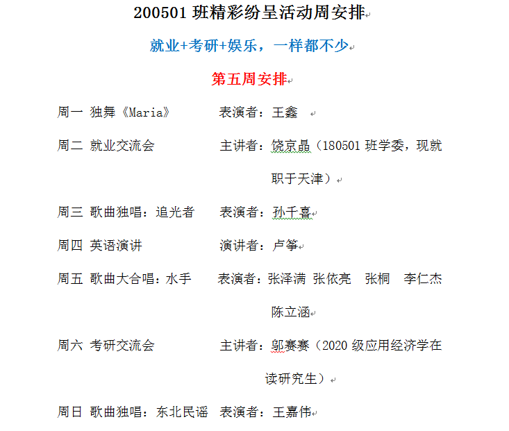 200501班精彩纷呈活动周第五周活动安排