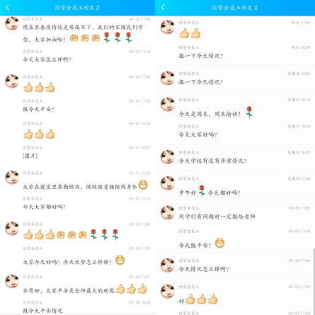 “疫”路同行,一路陪伴。疫情打乱了常规的校园生活,但打乱不了老师对员工的日常关心。虽然师生隔绝在屏幕两段,但金花玉老师依旧坚持通过群聊、视频会议等方式,每天对员工进行关怀慰问,及时了解员工在校生活、关心员工的学习状态、倾听员工的心声需求、关注员工的情绪变化,鼓励员工在寝室也要勤锻炼。细致入微、和风细雨的关怀,拉近了师生间的距离,支撑着员工们勇敢面对疫情,让员工们对生活充满希望,调整心态积极学习,坚定信念,给予了财会学子莫大的安慰。