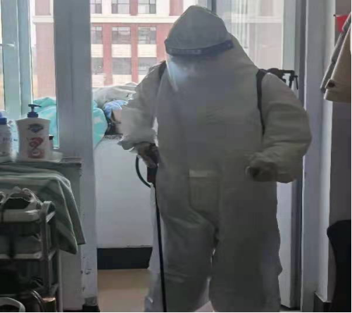 疫情之下,同学们虽身在宿舍之中,时空都在压缩,但心里却想着自己能做些什么样的力所能及之事。200508班王明昊老师班很多同学都在积极响应学院团委号召,争当志愿者,用实际行动诠释当代老员工的青春风采。从冬季的厚重羽绒服开始,外加厚重的防护服和背上沉重的消毒箱,穿梭于一层又一层,一个又一个寝室,为大家做好后勤保障工作。此时,口罩可能遮住的是他们稚嫩的脸庞,却遮不住的是无比坚毅的内心和满满的自豪,我为我们共同守护的家做了我能做的事,开心。