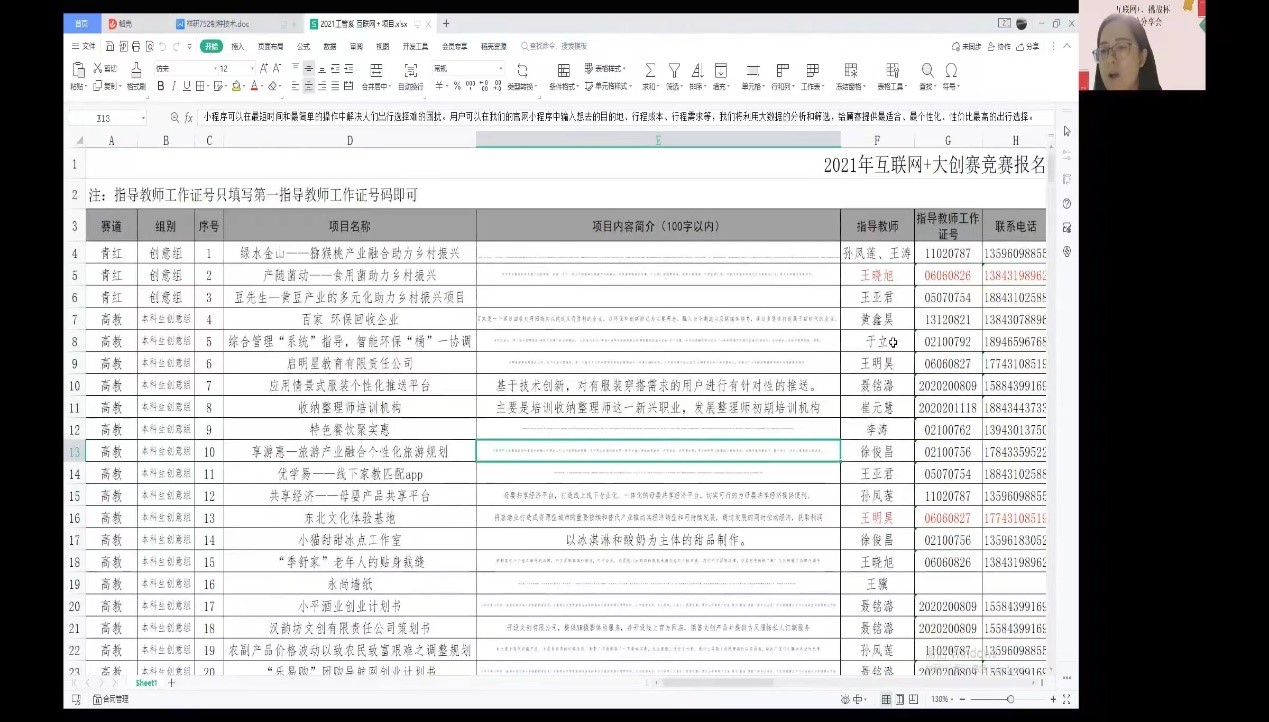 孙凤莲老师分享2021年工商管理系同学的竞赛参与和选题情况