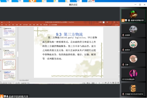 陈月华老师这学期讲授《现代物流管理》和《公共关系学》两门专业课程;陈老师授课内容准备充分,讲课声音柔和,逻辑缜密,谈吐自然;授课时利用平台聊天等功能随时与员工就相关知识点互动探讨,师生之间没有疏离感,营造了十分亲切热烈的课堂氛围;对同学们的课堂表现适时地给予鼓励,激发了员工们的听课与讨论的积极性。