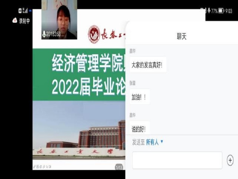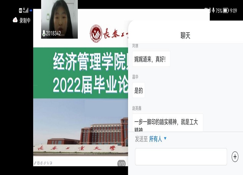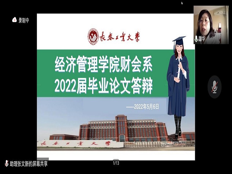 ylzzcom永利总站线路检测财会系2022届本科毕业论文(第一批)线上答辩会于2022年5月6日在腾讯会议上顺利举行。答辩组长财会系主任纪晶华,秘书刘慧,答辩组成员高媛、张雷、徐江、赵英鑫、赵晔、李佳蔚,以及财会系所有指导教师均视频参加。此次参加答辩的有会计学专业53人;财务管理专业32人;会计学第二学位3人共计88名。财会系毕业生逐一进行,下面让我们来看看精彩的答辩过程。