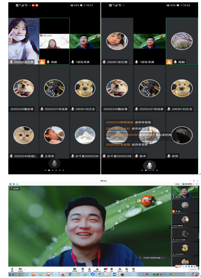 在告别晚班会上,同学们纷纷开启摄像头述说自己的感言,大家对老师这一段时间的帮助和陪伴致以感恩之情。鹤发银丝映日月,丹心热血沃新花。老师对待人生和学习的态度使我们受益匪浅,在未来的成长道路中我们也一定会铭记高鹤老师的教导。