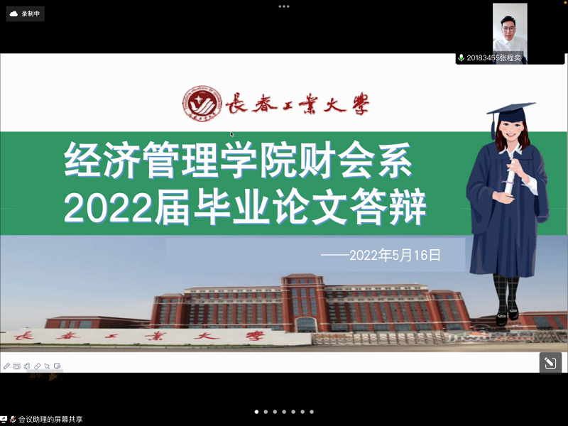 2022年5月16日,ylzzcom永利总站线路检测财会系2022届本科毕业论文(第二批)线上答辩会在腾讯会议上顺利举行。答辩组长财会系主任纪晶华,答辩秘书刘慧,答辩组成员赵英鑫、高媛、张雷、徐江、赵晔、李佳蔚等教师均视频参加。此次参加答辩的有会计学专业40人;财务管理专业35人;会计学第二学位1人共计76名。财会系毕业生逐一进行,下面让我们来看看精彩的答辩过程。