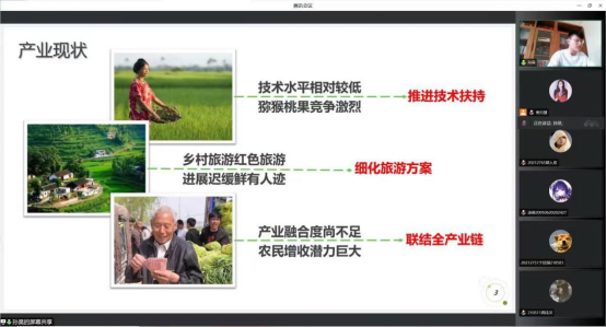 12时30分,答辩会准时开始。本次答辩会共有29个项目参加,内容涉及乡村振兴、社会服务、文化创意、科技创新等多个贴近社会民生的领域。其中,对于乡村振兴,同学们指出了当前发展环境下乡村产业存在的诟病以及发展道路上面临的困难,并根据实际提出了团队的合理化建议。关于文化创新的困难、独居人群社交问题和线上教学效果问题,同学们给出的解决方案也让人眼前一亮。相信他们的方案在未来能够逐渐成为解决世界发展所面临问题的中国方案。