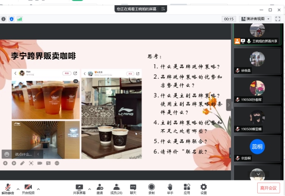 在这个特殊的学期,工商管理系全体师生一起努力,众志成城;理论和实践教学顺利推进,部分老师已经结束了理论课程教学,正按部就班的开展线上考试工作。王晓旭老师本学期主讲《营销案例分析》课程,很受员工们的欢迎;她和员工们交流互动中的每一个细节都充满了温馨与正能量,成为员工心目中的知心大姐姐。
