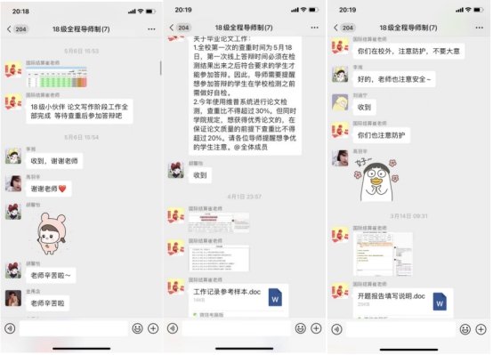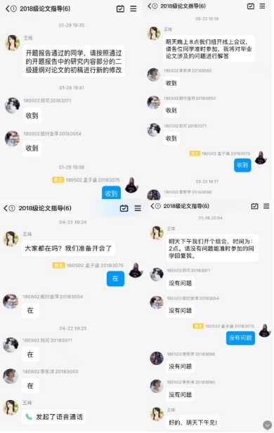 此外,赵老师还注重培养员工的团队合作意识,同学们互相审阅检查、互相学习。突发的疫情并没有阻碍毕业论文正常进程,及时在线的有效沟通反而提高了指导效率,确保了毕业论文工作进程有序展开。