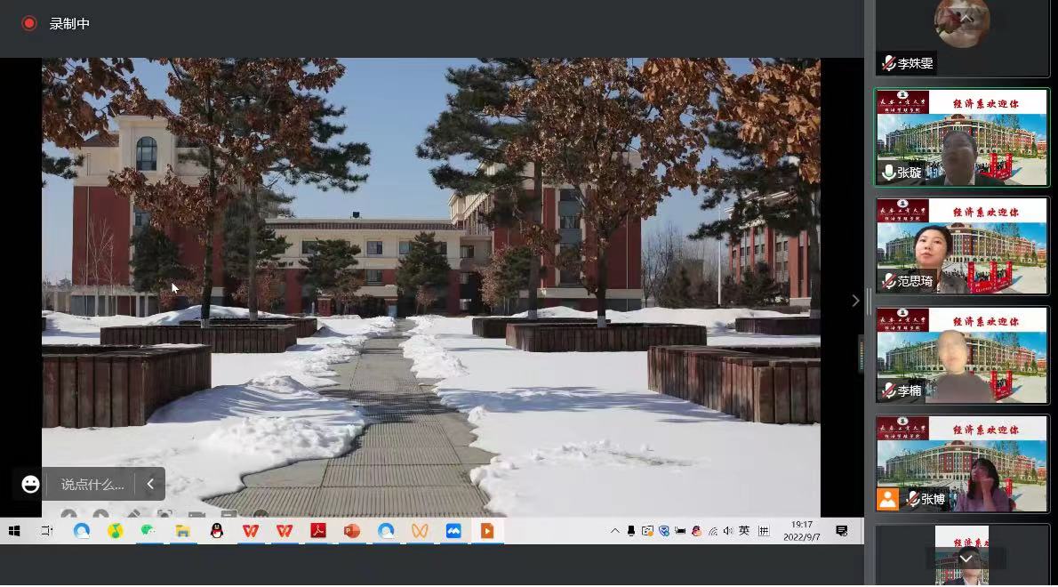 19时整,经济系主任张璇老师宣布本次见面会正式开始,并对新生们的到来表示热烈欢迎。首先,张璇老师通过图片和视频,向新生详细介绍了校园环境和基础设施。接着张璇老师向大家讲解了经济系金融学与国际经济与贸易两个专业的基本情况,其中包括学科成就、培养方向和教育理念等。在介绍经济系教学团队时,二十余位老师们都在镜头前对新生们表达了亲切问候,期待着尽快与同学们线下见面。