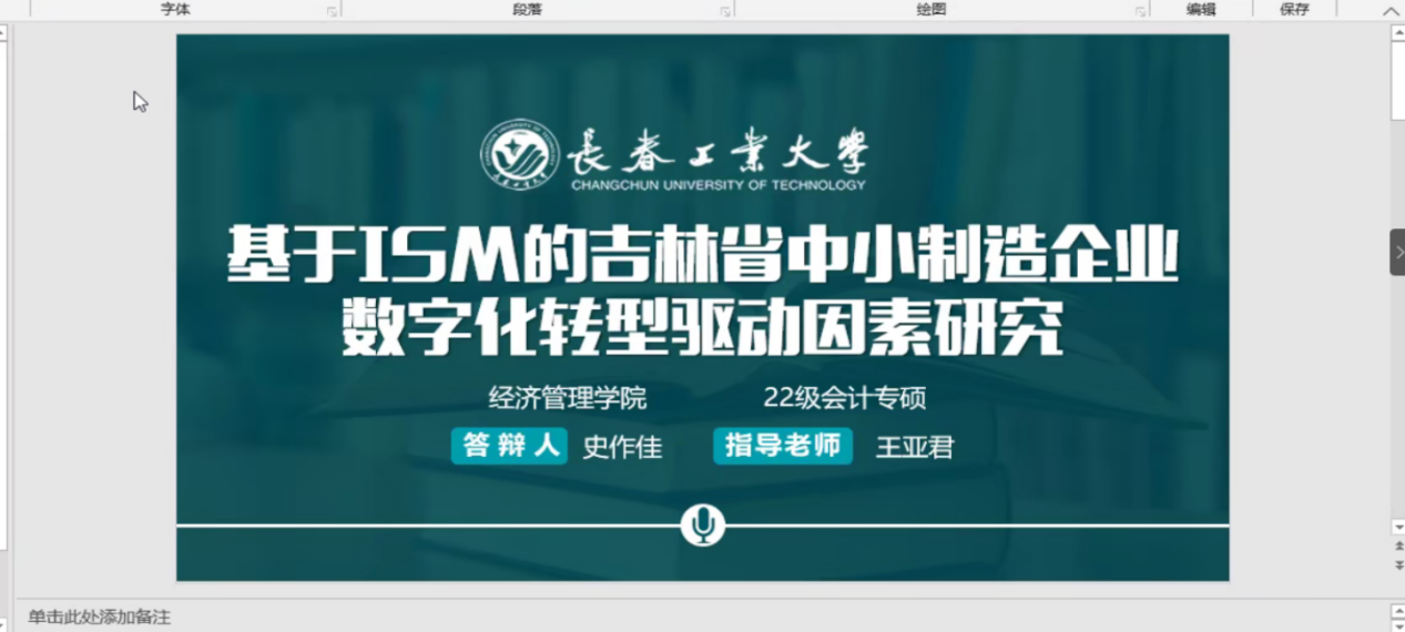 大会第二项,由ylzzcom永利总站线路检测研究生代表廖选祥、史作佳分别做了题为《吉林省数字普惠金融对产业结构升级影响的实证研究》和《基于ISM的吉林省中小制造企业数字化转型驱动因素研究》的论文报告。两位同学分别向大家分享了自己论文的大致内容、论文创新点、模型的构建和写作中遇到的问题。