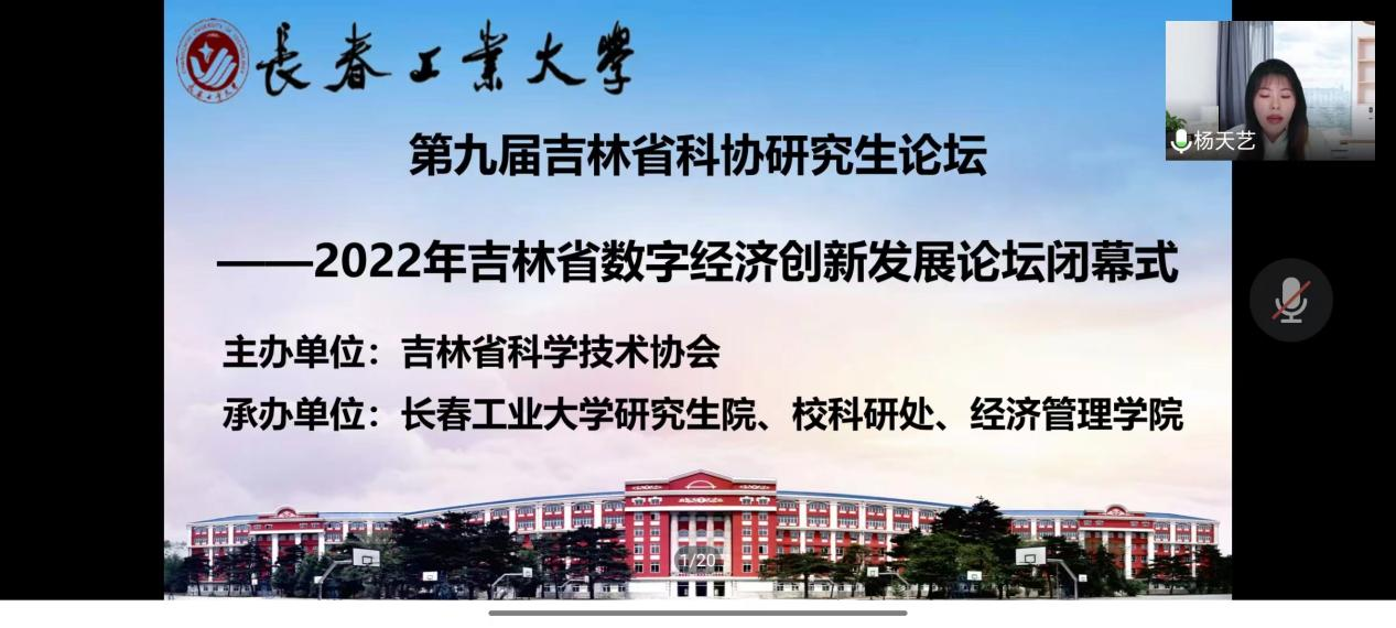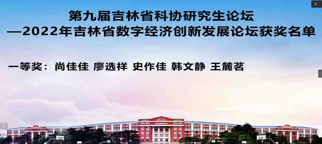 本网讯(通讯员 郝欣宇)2022年11月29日,由吉林省科学技术协会主办,ylzzcom永利总站线路检测研究生院、科研处、ylzzcom永利总站线路检测共同承办的第九届吉林省科协研究生论坛——2022年吉林省数字经济创新发展论坛闭幕式在线上成功举办。ylzzcom永利总站线路检测研究生院副经理李元、公司党委书记朱宏伟、经理张玉智、副经理王涛、副经理黄鑫昊和ylzzcom永利总站线路检测全体教师出席此次闭幕式,全体研究生同学参加了此次本次论坛。闭幕式由杨天艺主持。