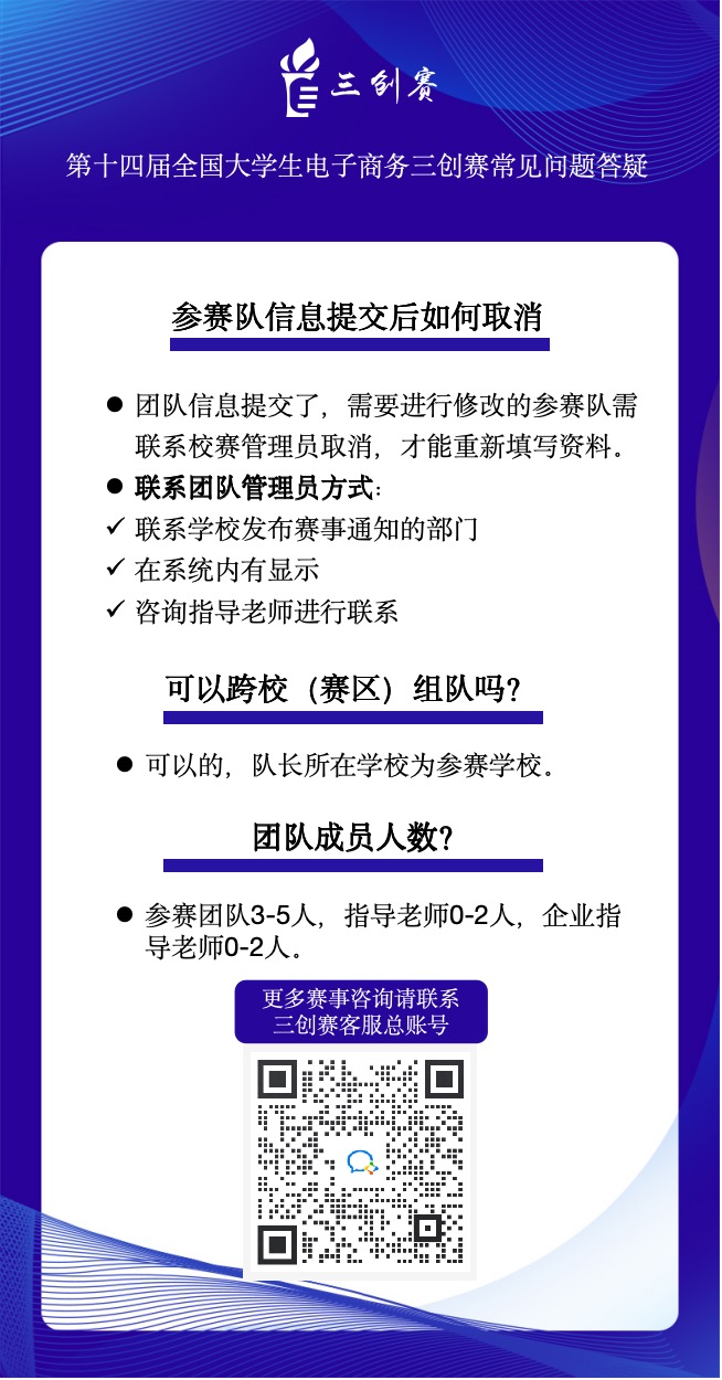 1. 三创赛所有文档均放在三创赛官方网站(www.3chuang.net)“资料下载”栏,所有赛事通知、公告均通过官方网站、微信公众号(名称:电子商务三创赛)发布。请各校教务处等管理、组织部门和有关各方注意查看相关信息。