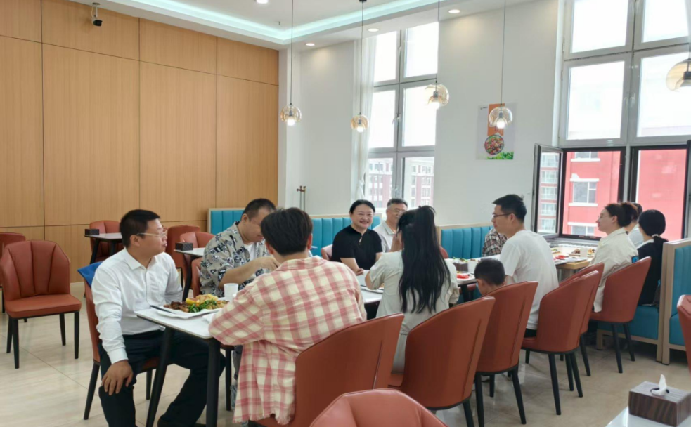 午间,老师和员工代表在食堂共进午餐,在食堂温馨的氛围中回味“读书时的味道”,亲切交谈,笑语不断,浓浓的情谊洋溢其间。