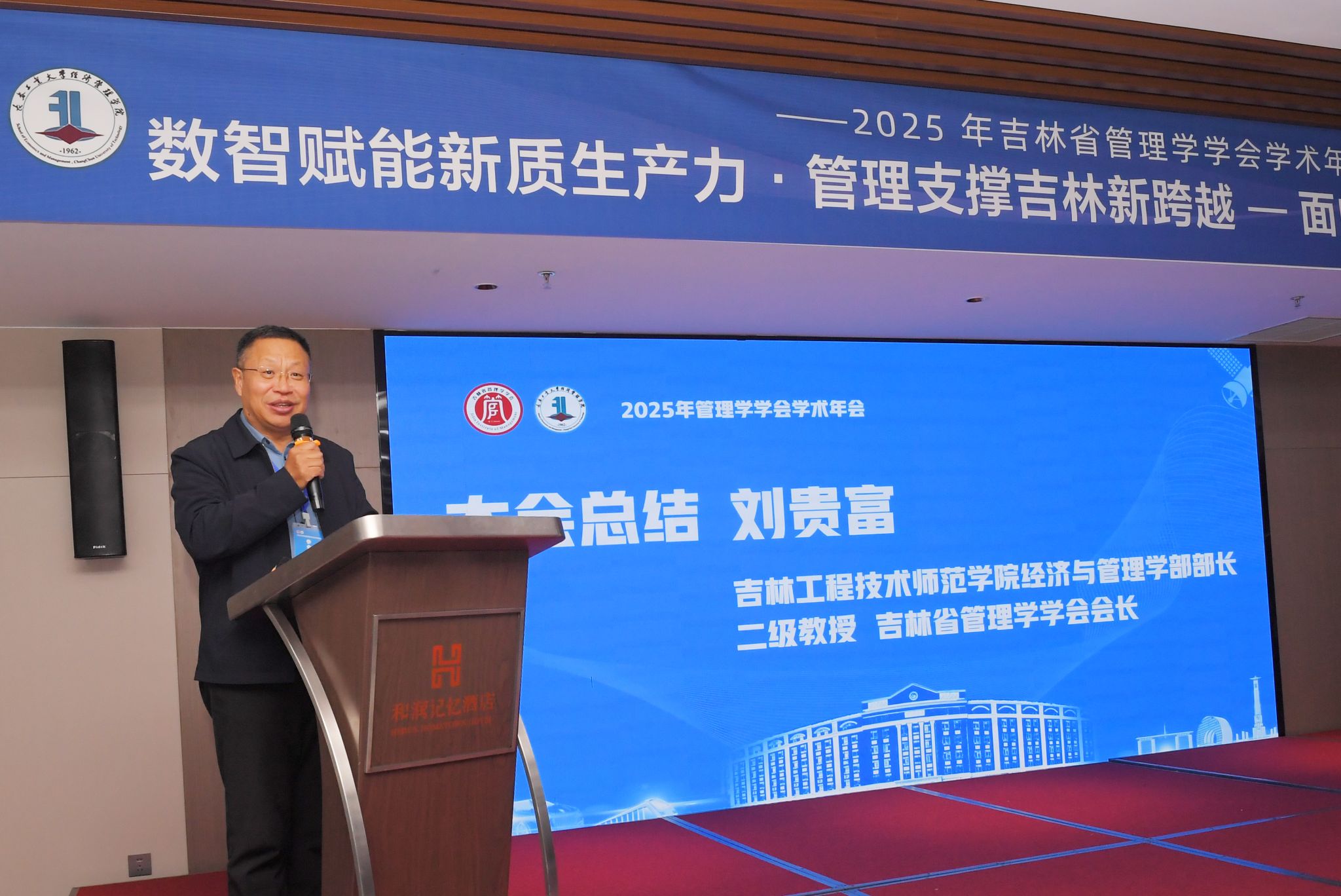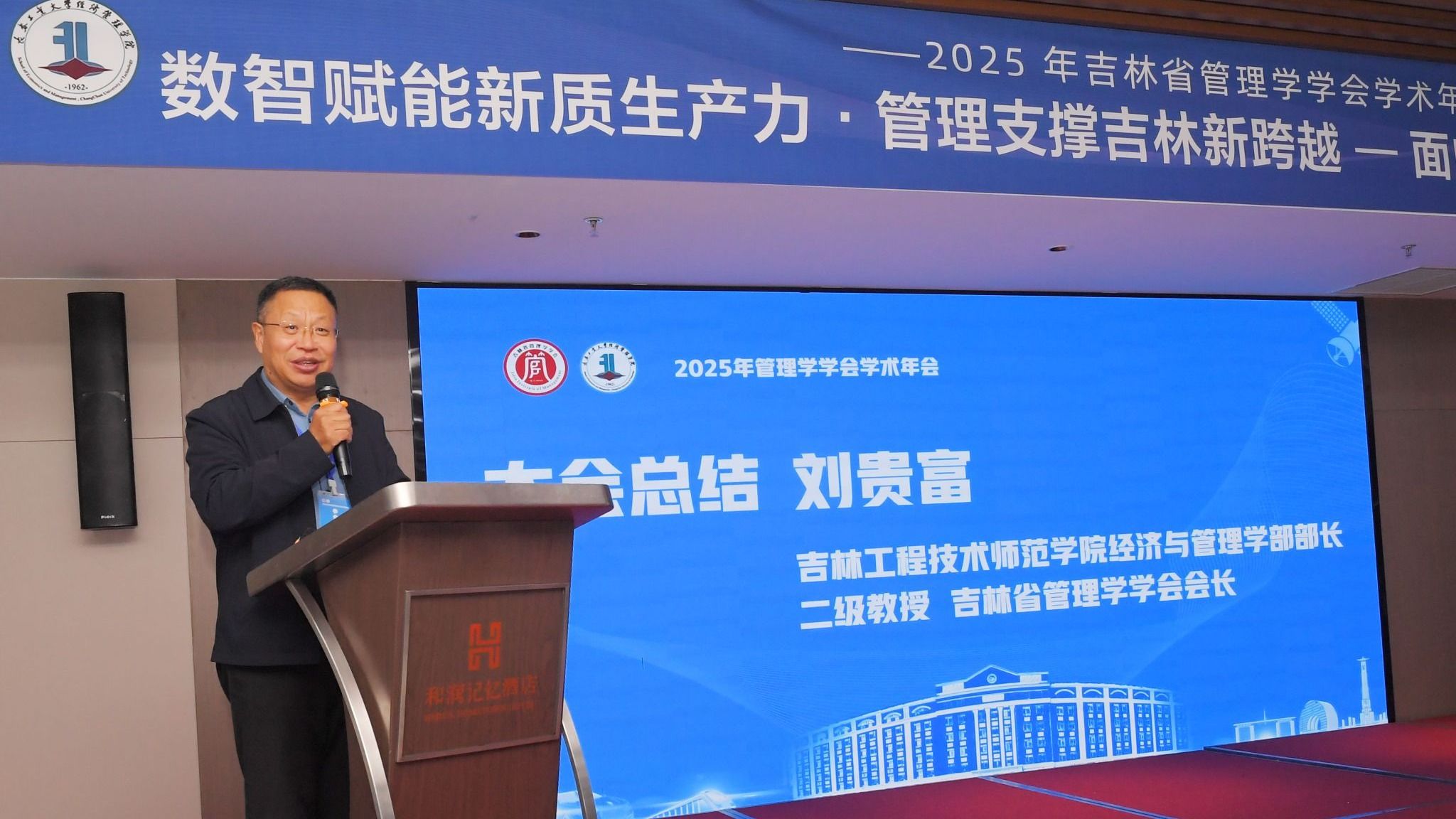 在大会闭幕环节,吉林省管理学学会会长刘贵富教授作总结致辞,对本届年会的学术成果和组织工作给予充分肯定,并强调学会将继续搭建高水平学术交流平台,推动吉林省管理学研究的创新与发展。下届年会承办单位北华大学公司党委书记张竞向与会代表发出热情邀请,期待2026年与各位学者在北华大学再聚首,共同续写吉林省管理学学术交流的新篇章。