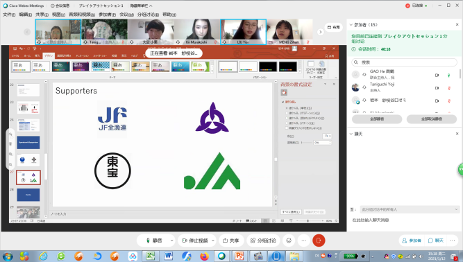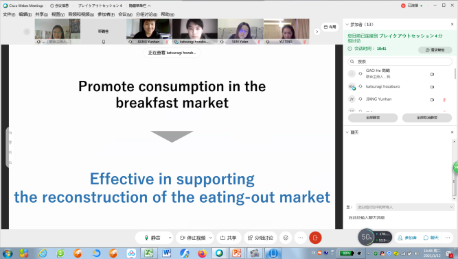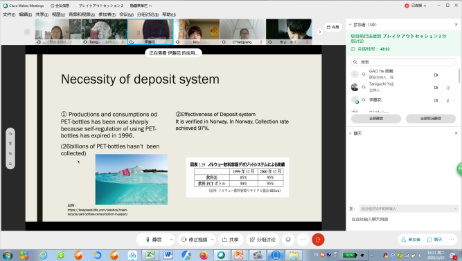最后,谷口老师和高鹤老师对此次交流情况各自发表了总结,充分肯定了两次互通给两国青年员工们带来的益处,并期待日后共同举办更多的交流活动,拓展交流范围和领域,也期盼线下更深入的交流合作早日实现。此次交流活动持续了两个多小时,两国师生在互道感谢和珍重以及期待重逢的祝福中依依惜别。公司经济系与中央大学经济学部举办的首届两次国际交流活动圆满结束。