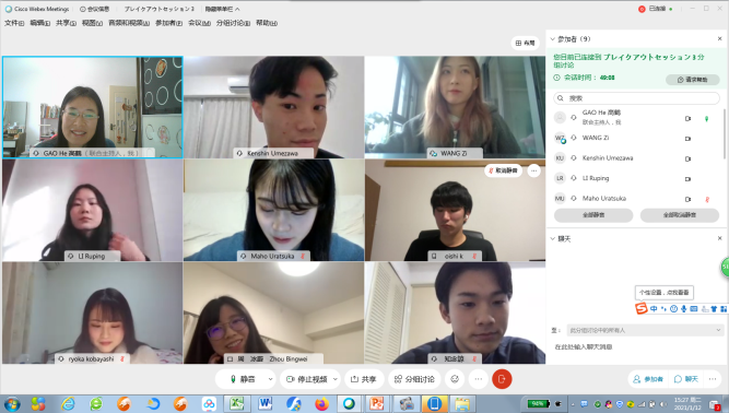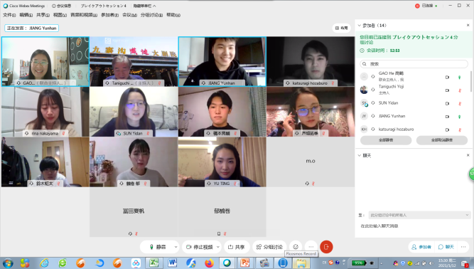 讨论期间,高鹤老师和谷口老师分别进入每一个分会场参与互动,不时增添新的话题,发表各自的观点。每一个会场气氛都非常融洽,中日青年员工们畅所欲言,既感到兴奋有趣又有所感悟和收获。谷口老师再次为本次活动录制了视频,多名中日员工也同时自发地录制视频和拍照留念。