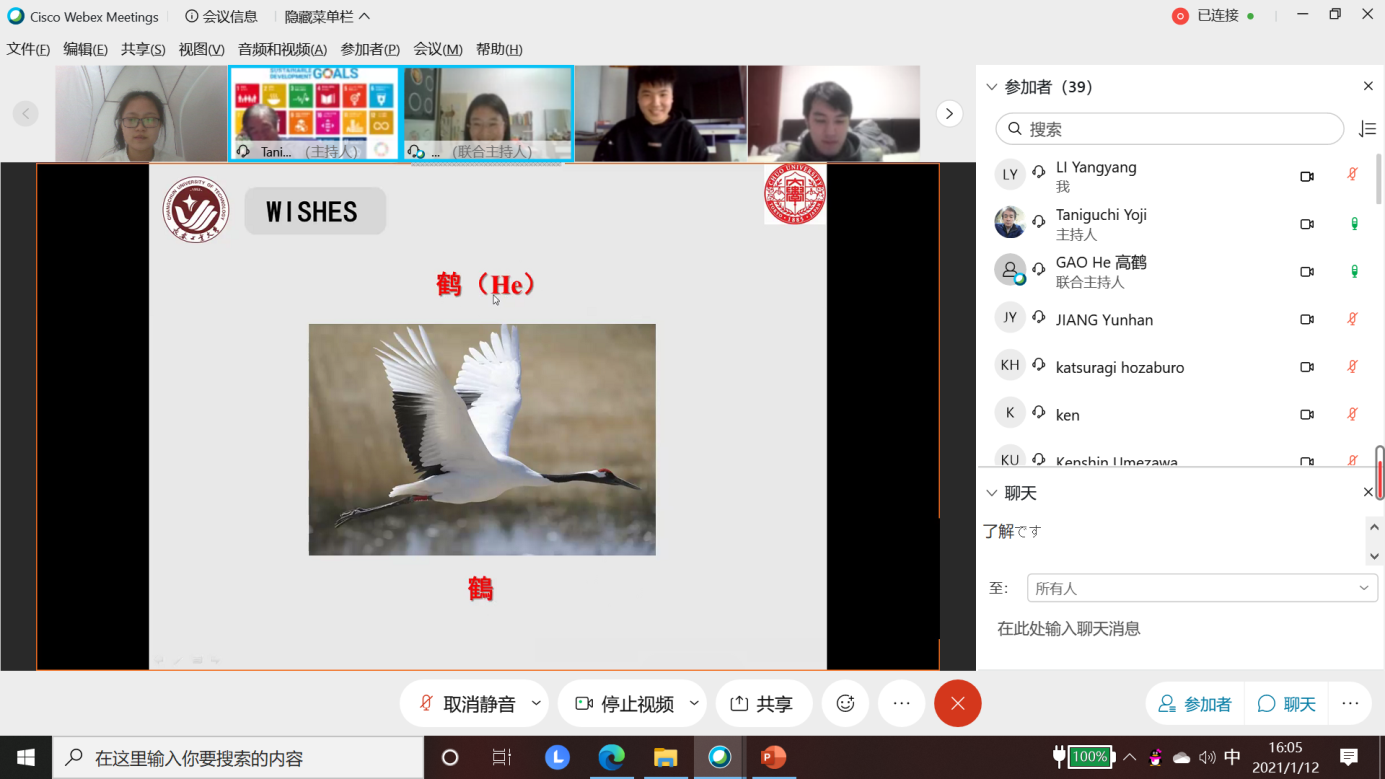 高鹤老师借名字中“鹤”的寓意为中日与会师生送上祝福