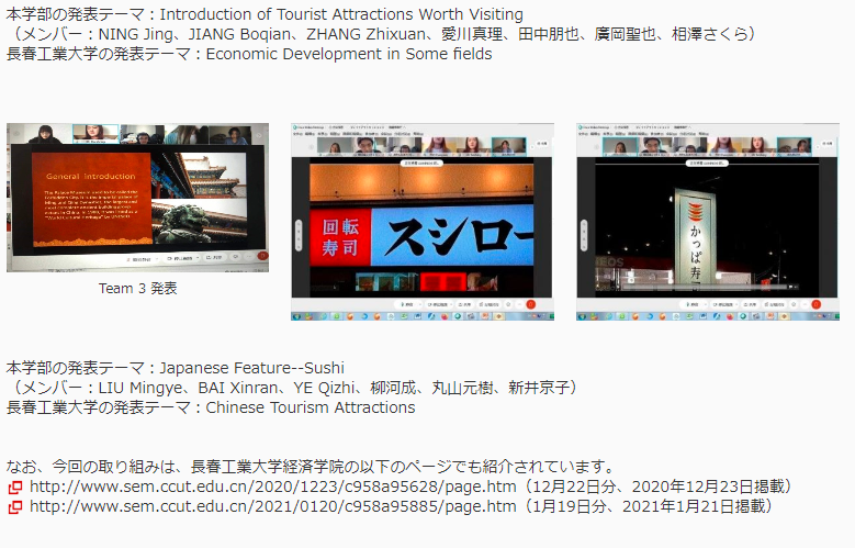 ylzzcom永利总站线路检测首届本科生国际交流活动由经济系副主任高鹤副教授倾力组织,分别与日本中央大学经济学部、国际经营学部合作举办,于2020年12月22日、2021年1月5日、2021年1月12日和2021年1月19日如期开展四场线上交流活动。系列交流活动取得了圆满成功,收效显著,意义深远。