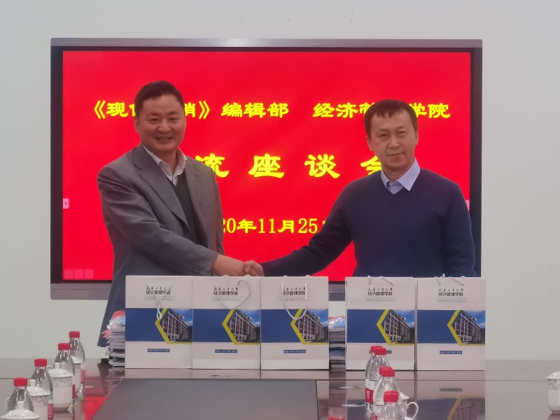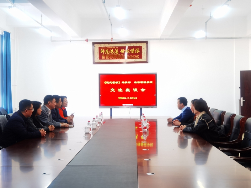 11月25日上午10:00,《现代营销》编辑部主编周海祥一行三人到访学院,与部分教师展开学术交流。经理张玉智、副经理王涛、部分系主任参加了座谈。