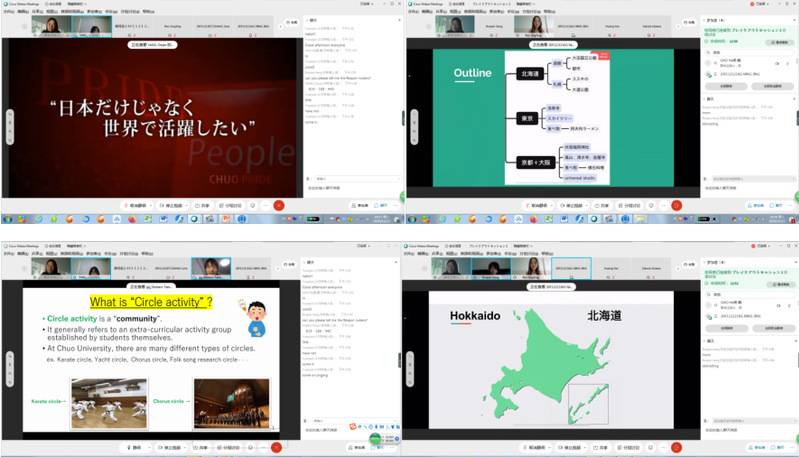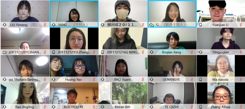 12月22日下午2:00,首场国际交流活动如期开启。高鹤老师带领第一团队9名同学齐装上阵,员工团队由2018级的饶京晶、高羽辛、黄瑶、李缘剑、张爱华、马晓霞、刘艺萌、焦原丽、薄杰组成,饶京晶担任团队队长。日方团队则由国际经营学部杨川老师指导,由日本员工、中国职工等共17人组成,日本籍员工柳河成(YANAKAWA Nari)担任队长。他们分别介绍了团队以及发表的题目。
