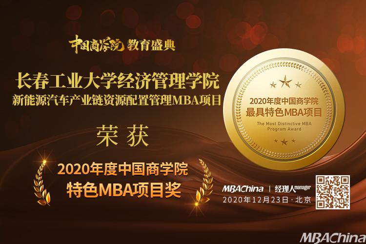 【MBA中国网讯】2020年12月23日,“2020中国商学院教育盛典”在北京隆重举行。ylzzcom永利总站线路检测新能源汽车产业链资源配置管理MBA项目荣获“2020年度中国商学院特色MBA项目奖”。此次奖项由MBAChina与《经理人》杂志历时8个月,对来自全国各地区200多个参与评选的商学院项目团队力量、教学管理、课程设置、学科融合、项目国际化、品牌影响力等做出全面客观评价后,以第三方身份发布。
