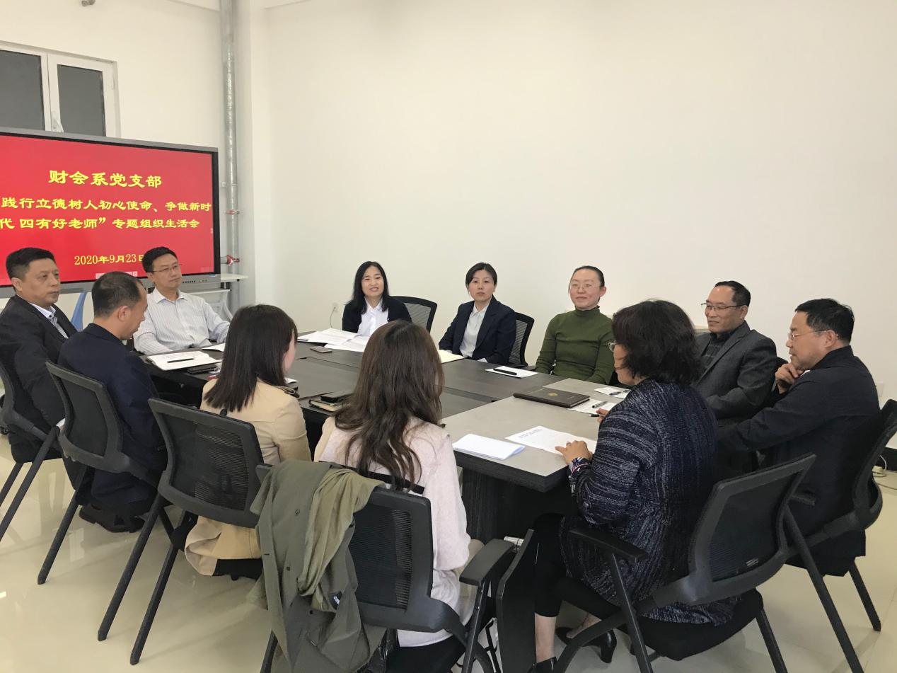 会议由财会系党支部书记高媛老师主持,并由其先对近期支部工作情况进行汇报总结。会上,每位党员老师均以做“有理想信念、有道德情操、有扎实学识、有仁爱之心的四有好老师”为标准,分别从理论学习、教学管理、科学研究三个方面认真的进行批评与自我批评。真正做到从工作实际出发,深刻剖析问题、反思自己、吸取建议,达到了统一思想、整改问题、凝聚力量的目的。
