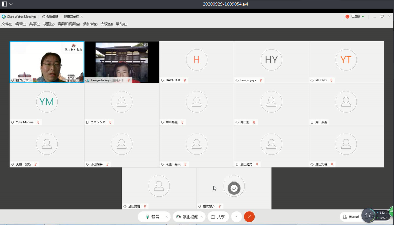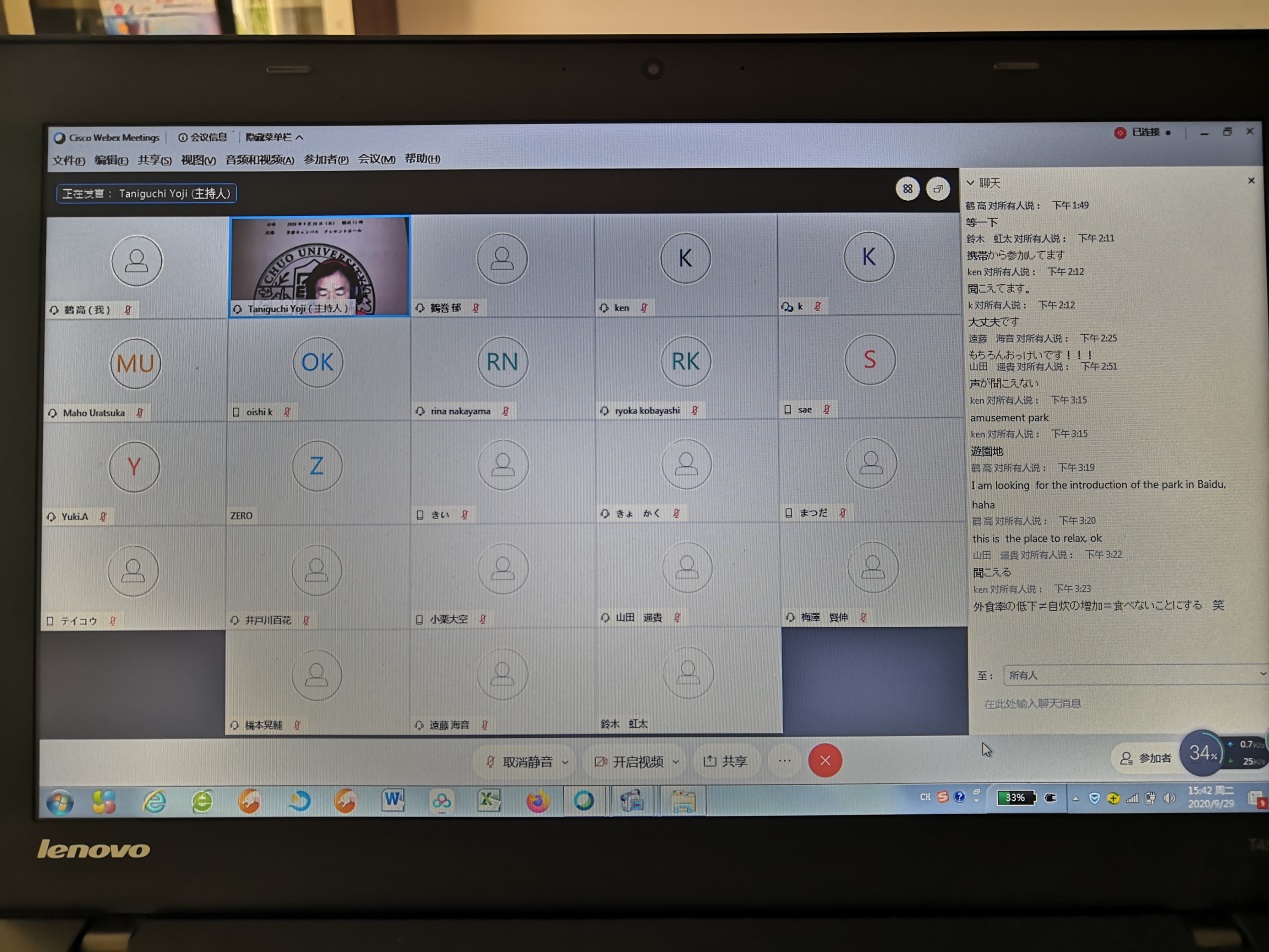 新冠疫情背景下,日本绝大部分高校2020年秋季学期仍主要采用在线教学方式,中央大学使用的教学平台是Webex。高鹤老师首先参加的是大三年级的学术研究汇报会,接着参加了大二年级的小组讨论课。在谷口教授的引荐下,高老师全程英语介绍了ylzzcom永利总站线路检测的各专业情况、个人学术研究方向和学术成果,以及访学期间的合作与交流情况,受到员工们的热烈欢迎。经过介绍,使得外国老员工对中国高校有了更多客观了解。