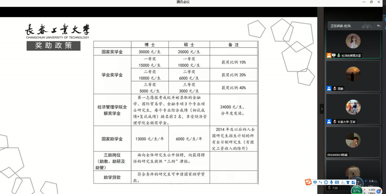 在长春大学经济学院系主任王老师和辅导员唐老师的大力配合下,员工们参与宣讲的积极性非常高涨,近150名员工准时到位,并积极与杜洋老师进行互动,交流了今年报考研究生的打算。