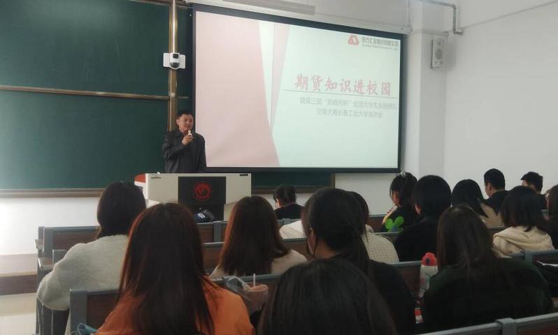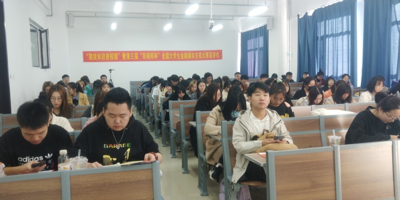10月22日上午,学院邀请东方汇金期货有限公司来校举办了“期货知识进校园”暨第三届“郑商所杯”金融模拟交易大赛宣讲会,金融学专业2018级88名员工参加宣讲会。
