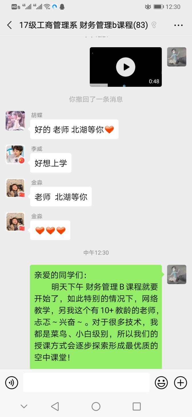 “同学们好!没想到我们会在这里见面。大家也一一寒暄过了,系统不太稳定,一会上课的时候大家把摄像头关了,听我讲。”
