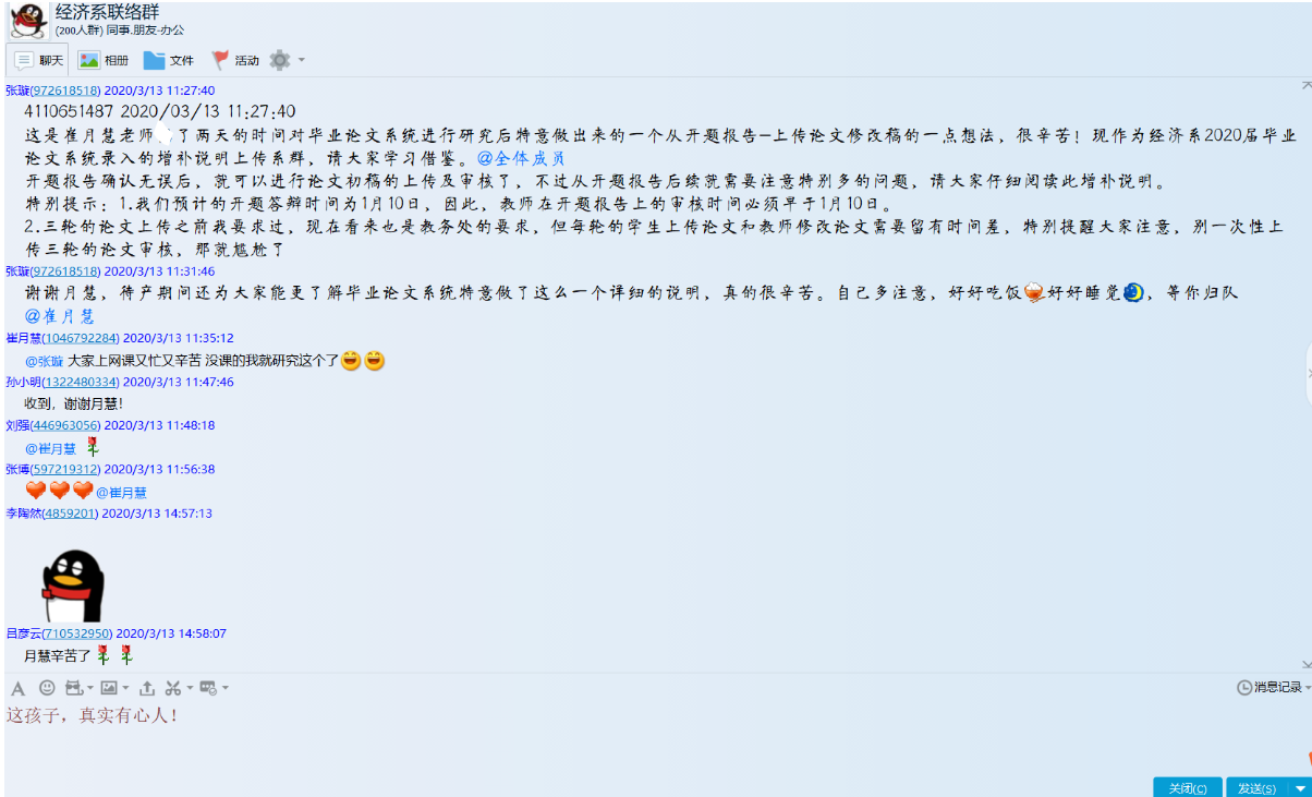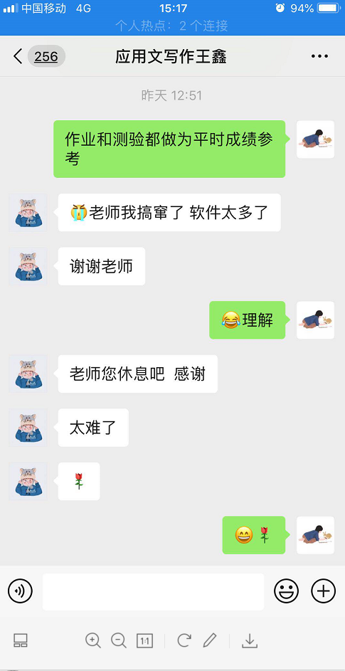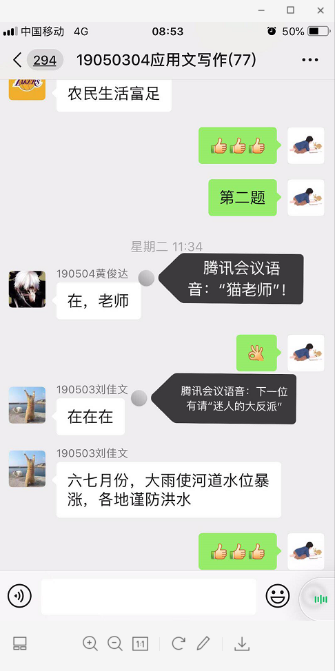 某天学习通关闭了很多功能,导致师生无法互动,杨爽老师跟同学们商定:课程讲授在学习通进行,答题时全班移师微信群。
