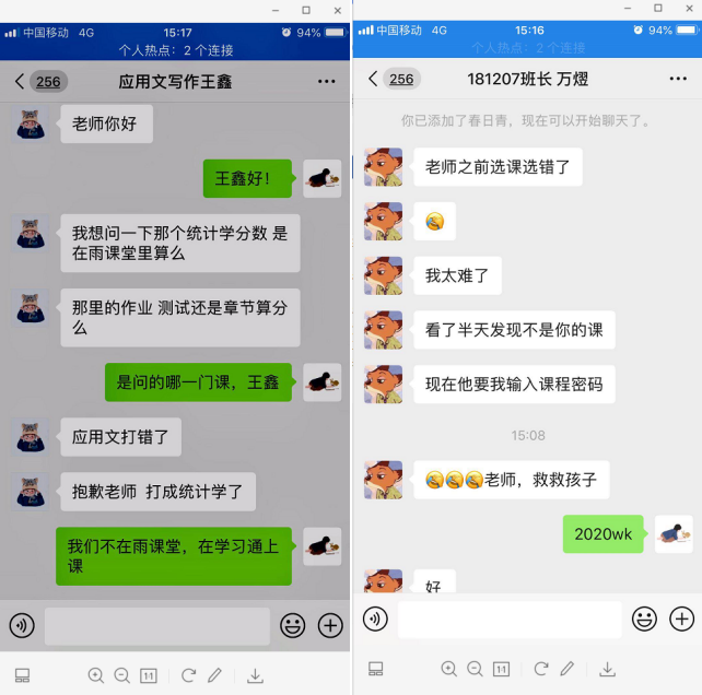 不同课程使用不同软件,登录不同平台,一不留神就乱套了!且看两位极致糊涂员工的微信。