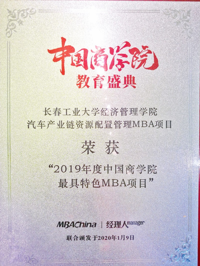 2020年1月9日,由MBAChina与《经理人》杂志共同举办的“中国商学院”教育盛典在北京成功举办,本次盛典聚集了业内知名专家、全国各大商学院经理、主任及杰出员工代表,并围绕商科教育行业进行了主题分享、圆桌对话、评选颁奖等一系列活动。公司荣获“2019年度中国商学院最佳特色MBA项目”。