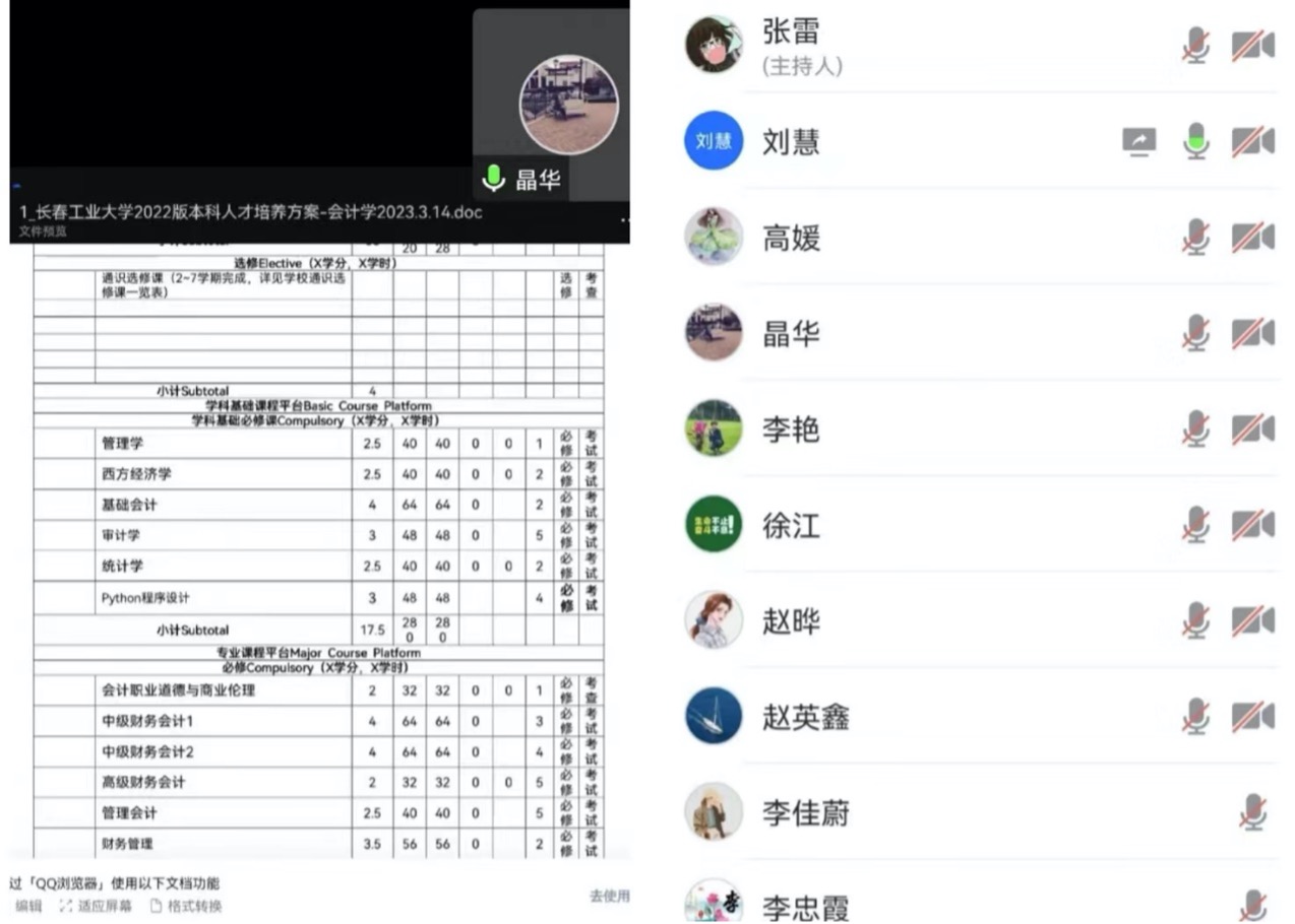 公司网讯(通讯员孙家乐)2023年3月18日,财会系新版培养方案研讨会通过腾讯会议准时召开。全体财会系老师出席本次会议。研讨会旨在明晰财会系新版培养方案方向与目标,了解财会系新版培养方案的障碍与问题,丰富和完善财会系新版培养方案,提高教学质量,促进财会系的教学发展。