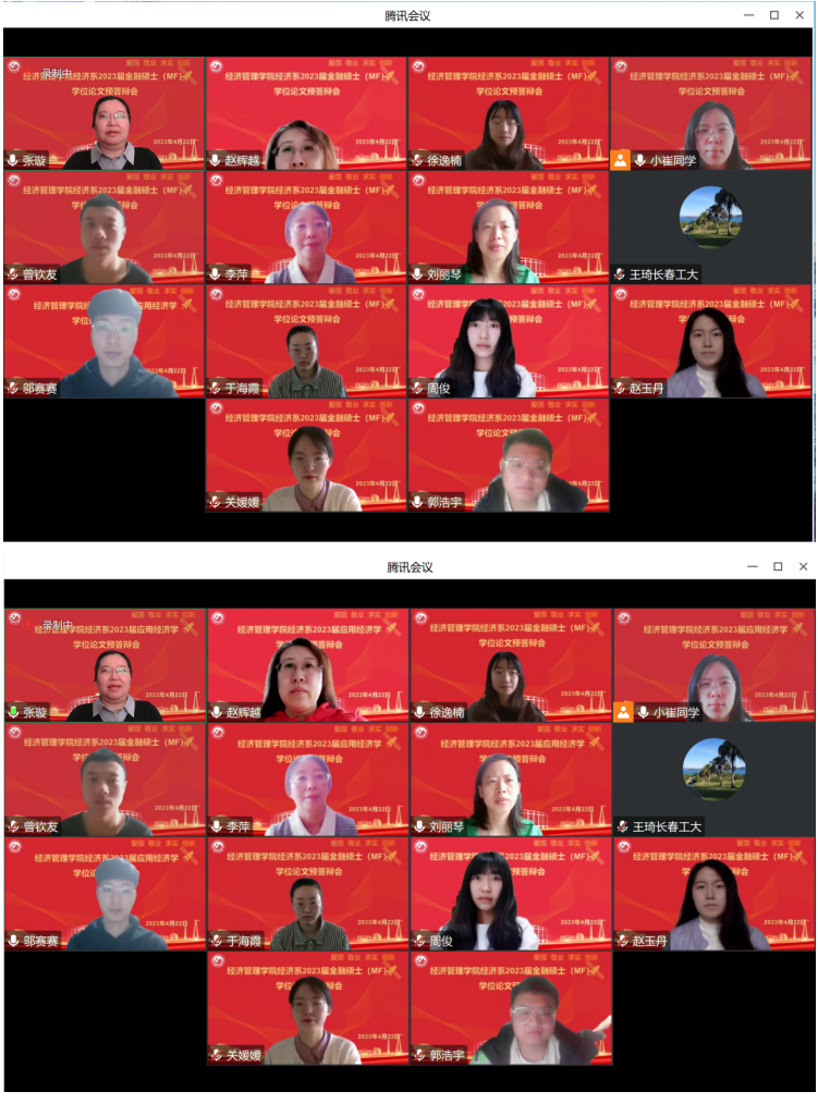 为保证硕士学位论文质量,贯彻落实学校及学院关于公司产品的相关要求,经济系于2023年4月22日上午9:00通过腾讯会议召开2023届金融硕士与应用经济学硕士学位论文预答辩会。