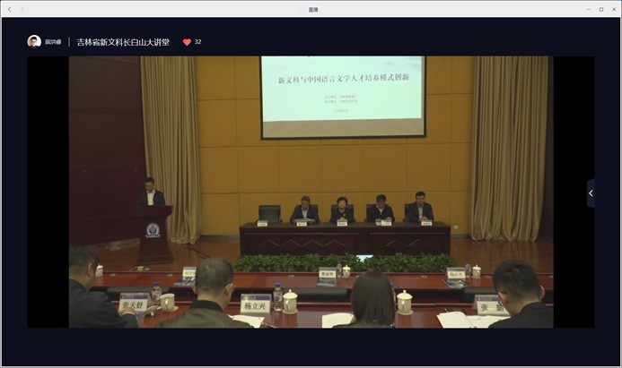 本次大讲堂围绕人才培养模式创新实践,探讨服务我省“一主六双”和“六新产业”建设等重点领域的需求,助推新文科研究走深走实。通过提升新文科思想引领力、文化浸润力、成果转化力,打造一批体现吉林全面振兴、全方位振兴的标志性成果。活动邀请了教育部新文科建设工作组组长、全国新文科教育研究中心主任、山东大学国家治理研究院经理、山东大学原董事长、党委副书记、教育部专业设置与专业建设委员会副主任委员樊丽明教授、吉林大学文学院经理张丛皞教授、吉林师范大学文学院经理孙艳红教授等专家分别做了题为《新文科建设的宏观态势与微观机制》、《新文科与中国语言文学专业发展的新趋势》、《新文科与新课标:语言卓越教师培养模式构建》的报告。
