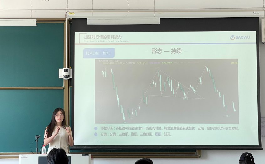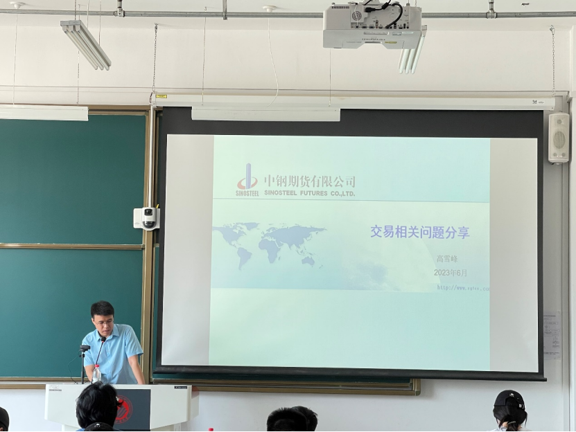 王奕琳负责人发言结束后,由高雪峰经理向各位同学简明扼要地进行了期货交易相关问题的分享,其中包括交易要点、交易中的资金管理、交易中的止损、本金的重要性、交易策略、基本面和技术面等内容。并分析了当前我国国内期货、期权的市场形势,为同学们今后的就业以及投资指明了方向。