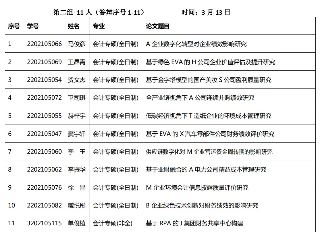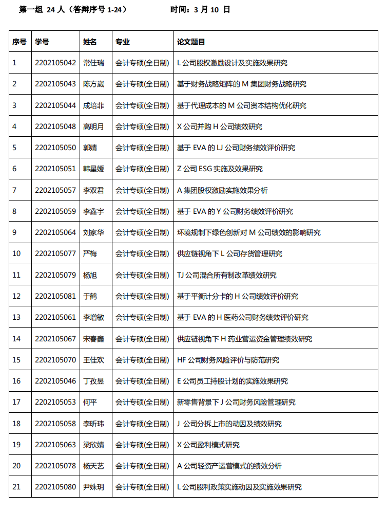 公司网讯(通讯员 张雷)为进一步加强会计专业学位硕士公司产品过程管理,提高学位论文质量,根据研究生学位论文工作相关安排,公司拟对全体2024届会计专业学位硕士研究生组织毕业论文预答辩工作,具体工作安排如下: